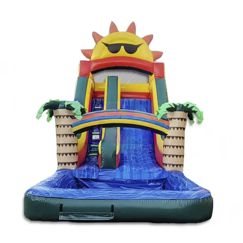 Designed with vibrant summer-themed graphics, the Summer Time Waterslide sets the perfect atmosphere for your outdoor festivities. Let the colorful visuals transport you to a world of sunshine, laughter, and refreshing water fun.